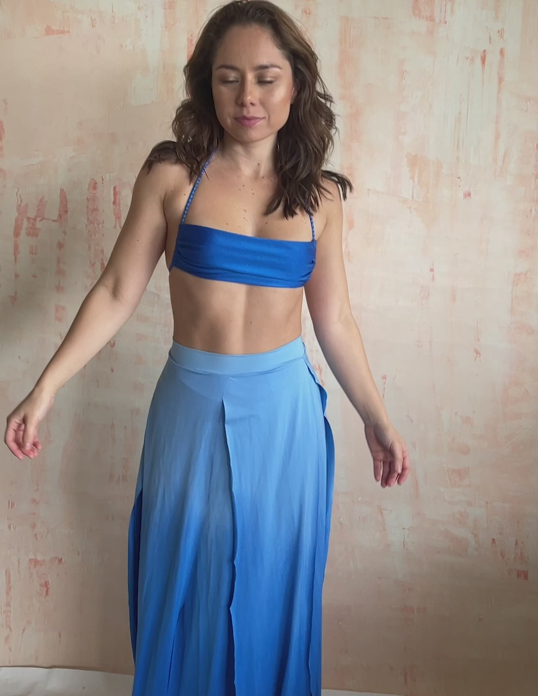 Our skirt, Stripe, is ideal for the beach. Featuring thigh-high slits and a dramatic A-line drop, the versatility of the block fabric allows you to tie it in numerous ways and even turn it into a dress! It's an indispensable garment for any summer look or perfect for a day-to-day outfit!