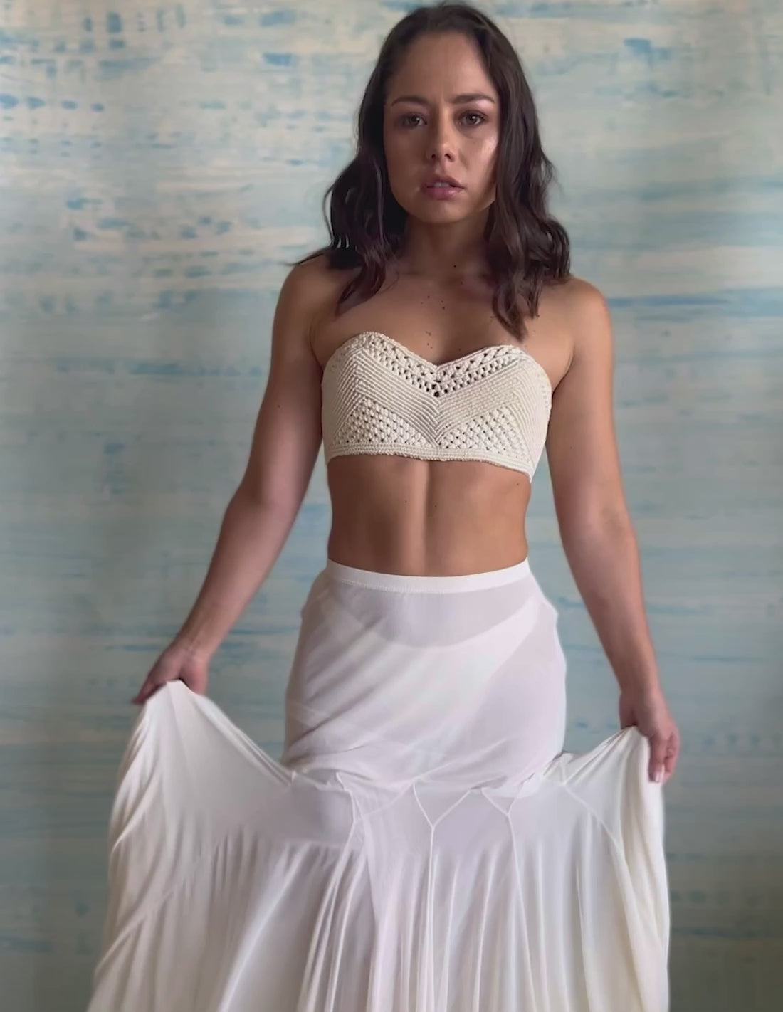 Our Vento features a classic silhouette with a macramé twist to elevate any outfit. The pointed tips on the top of the bust will help sculpt your figure. Adjustable on the back for support.