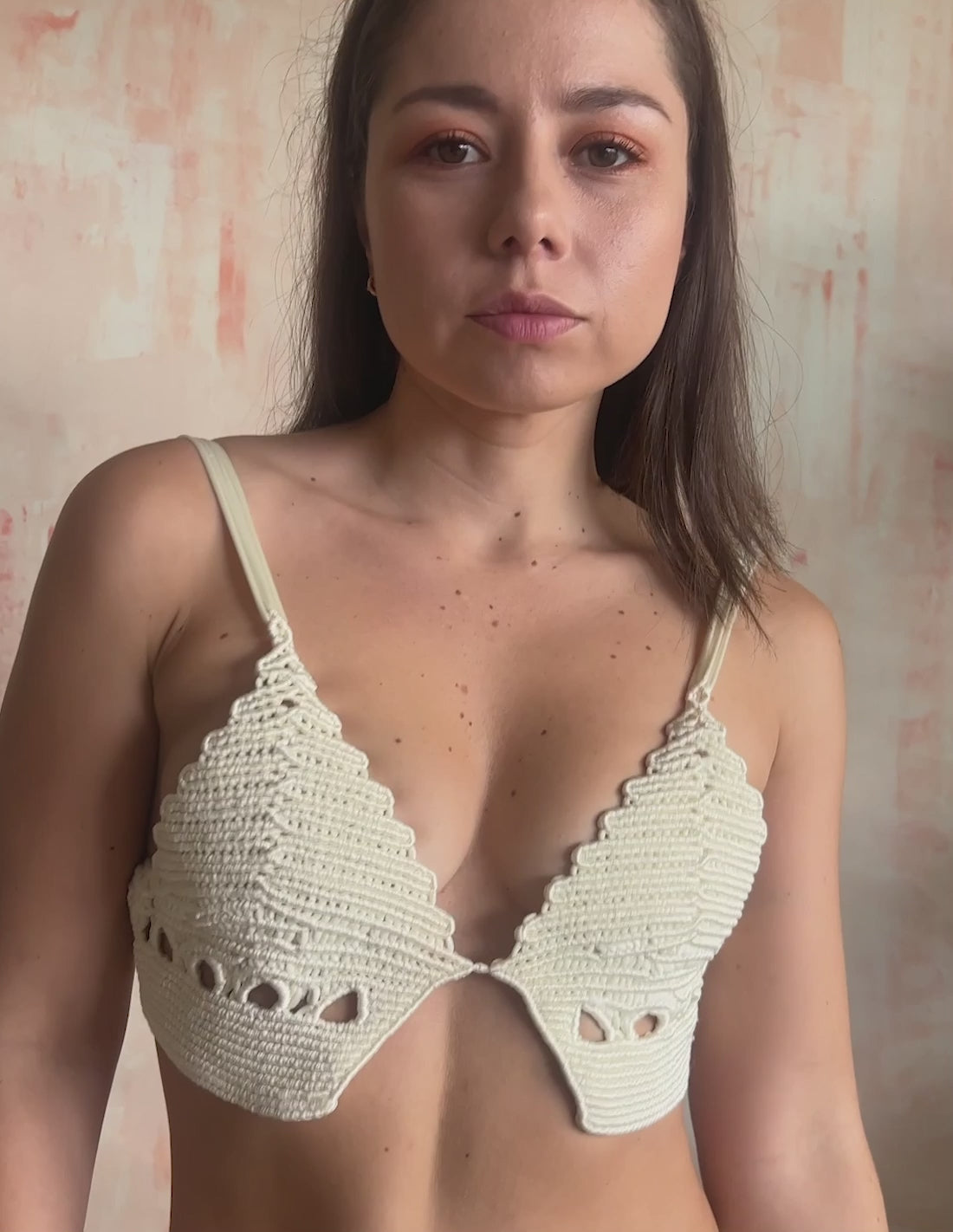 The Tolla crop top is simple yet effective in its silhouette. It features a deep-v neckline with minimal coverage and is adjustable on the back.