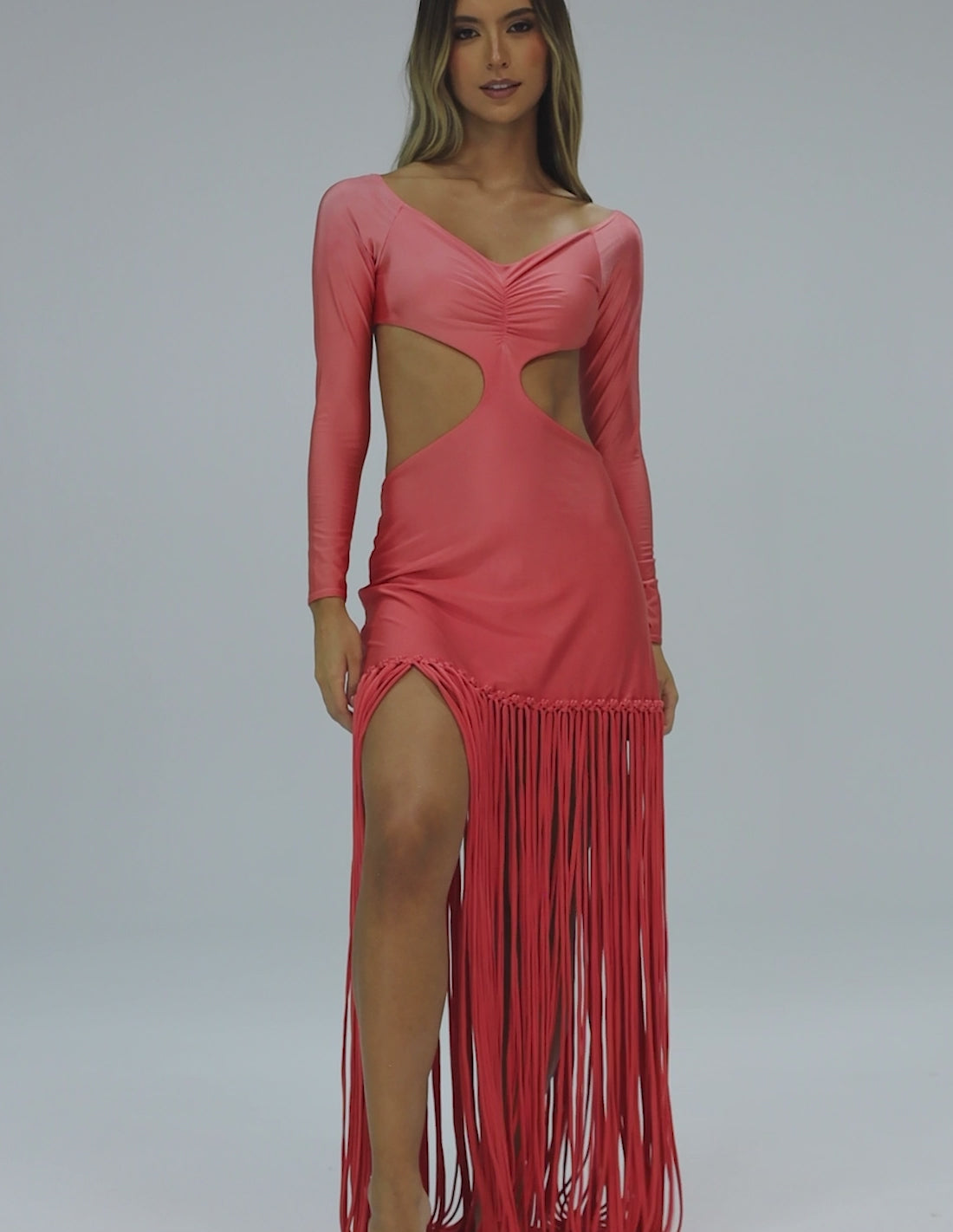 Our Aloha dress is TOO MUCH! A design with side cutouts that allows you to highlight your figure. It has a lot of movement at the bottom thanks to our famous fringe, maintaining an elegant and fun look at the same time.