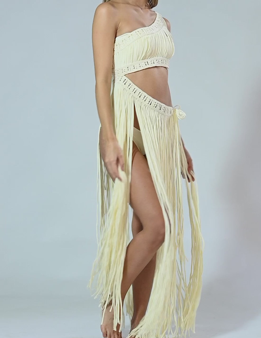 Our Jony is a gorgeous dress with plenty of movement for any fun-filled event! Featuring a fringe skirt, this bold one-shoulder statement piece will be the perfect addition to your wearable art collection. (includes a top and bottom)