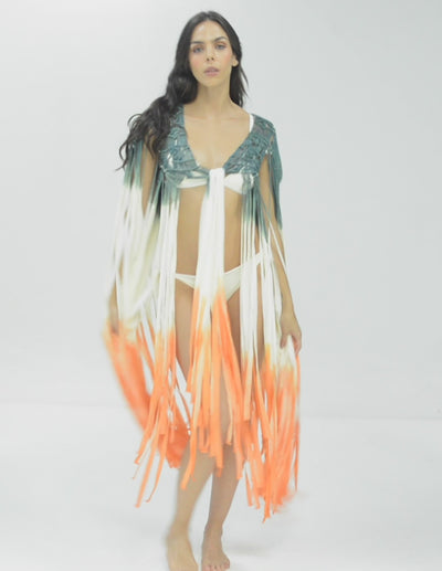 Our Stem cardigan is macramé art with a long fringe that moves with you! Every occasion is an opportunity to show off our macrame cardigan, whether over a swimsuit, for a party, or worn on any casual day. You will always stand out with this beautiful art piece.