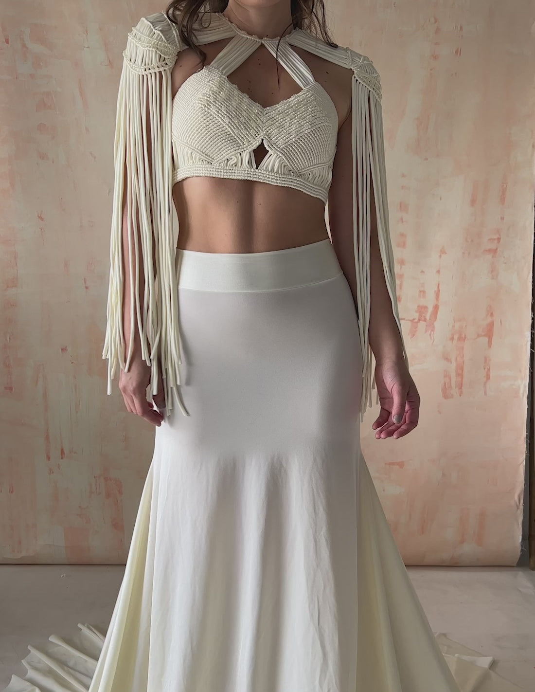 The Magnolia skirt is an elegant and delicate piece. Its fit in the upper area is close to the body highlighting your hips. This formal silhouette is as remarkable as our collectors! Perfect for your most special moments…