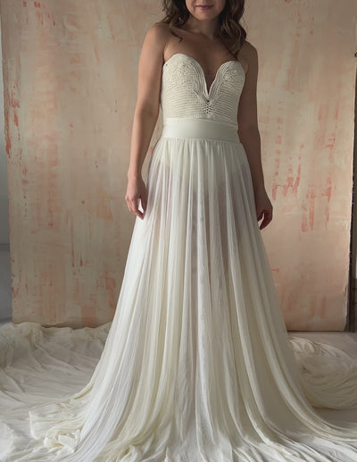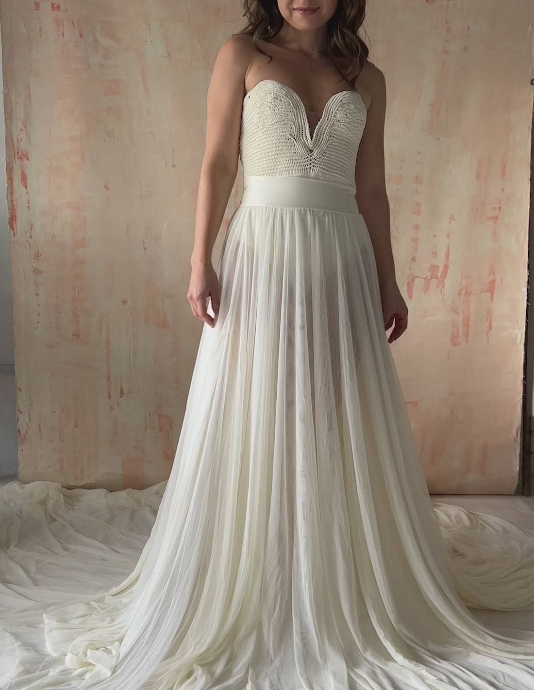 Snowflake is a tulle skirt with an A-line flare for a sophisticated look, with a lot of movement and a fitted waist, giving you a nice hourglass figure. This formal piece is as unique as our collectors! Perfect for your most special moments…