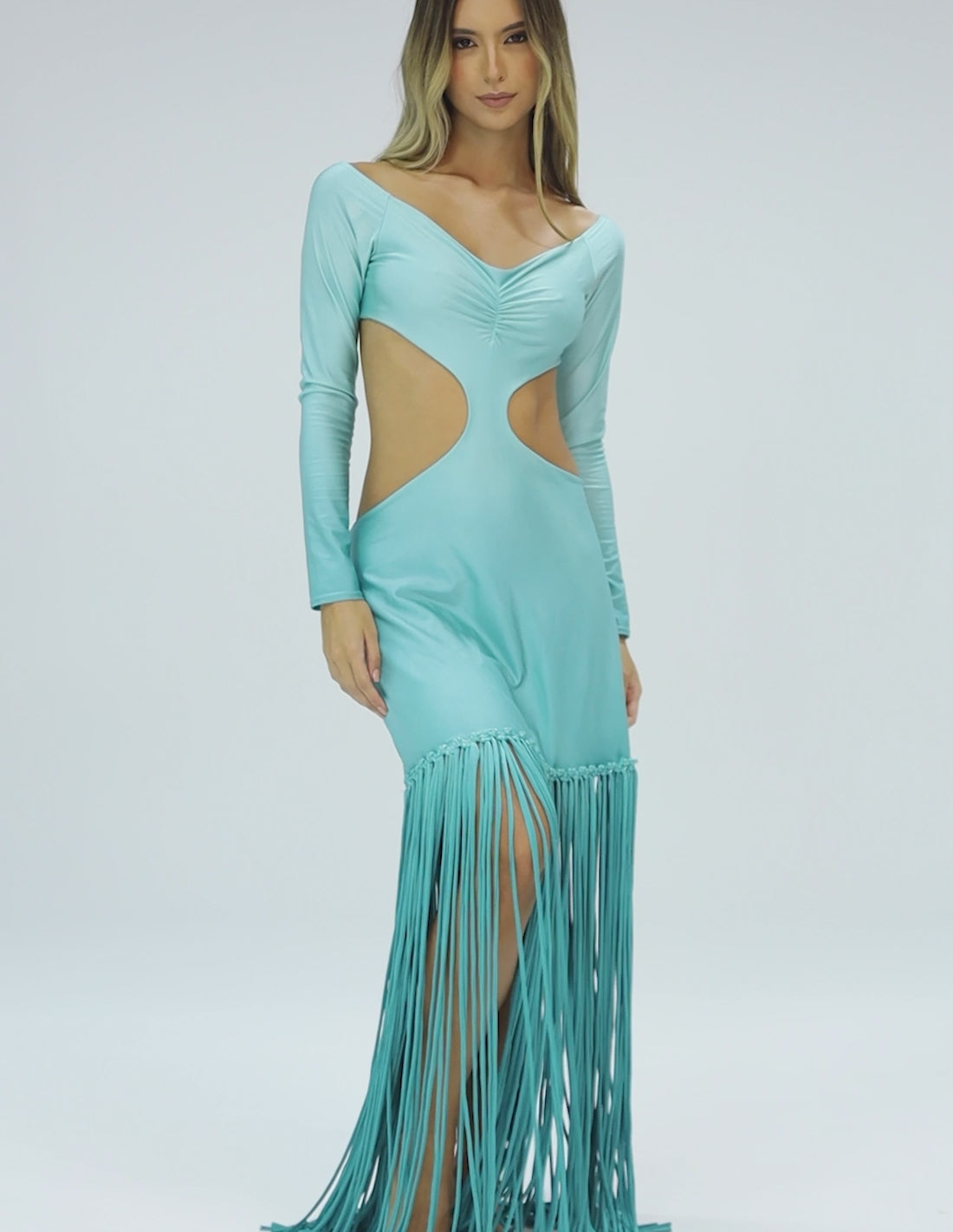 Our Aloha dress is TOO MUCH! A design with side cutouts that allows you to highlight your figure. It has a lot of movement at the bottom thanks to our famous fringe, maintaining an elegant and fun look at the same time.