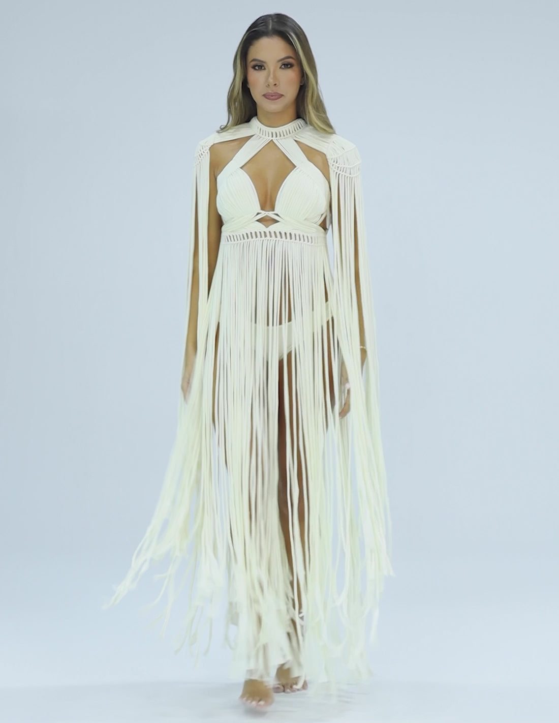 Cadere... fill your closet with wearable art!! Featuring a fringe skirt and shoulder pads that move with you, this festive statement piece will make you stand out at any event. Adjustable on the back for extra support and includes a hipster-fit bottom. If you're looking for sparkle, choose Cadere Glow! Made with Murano crystals.